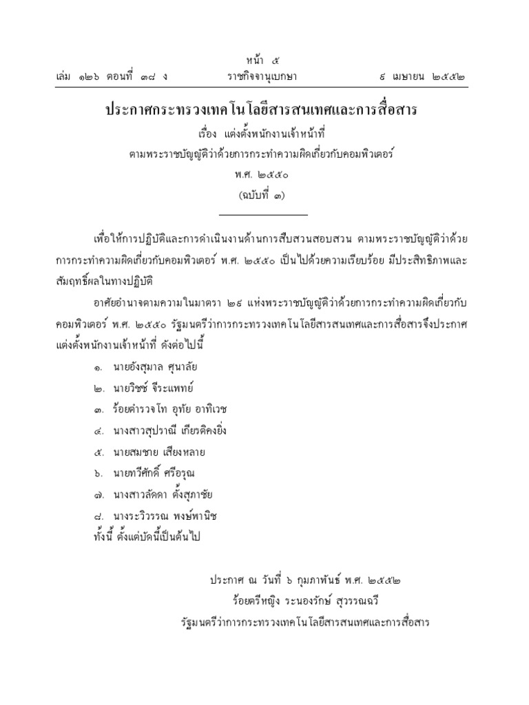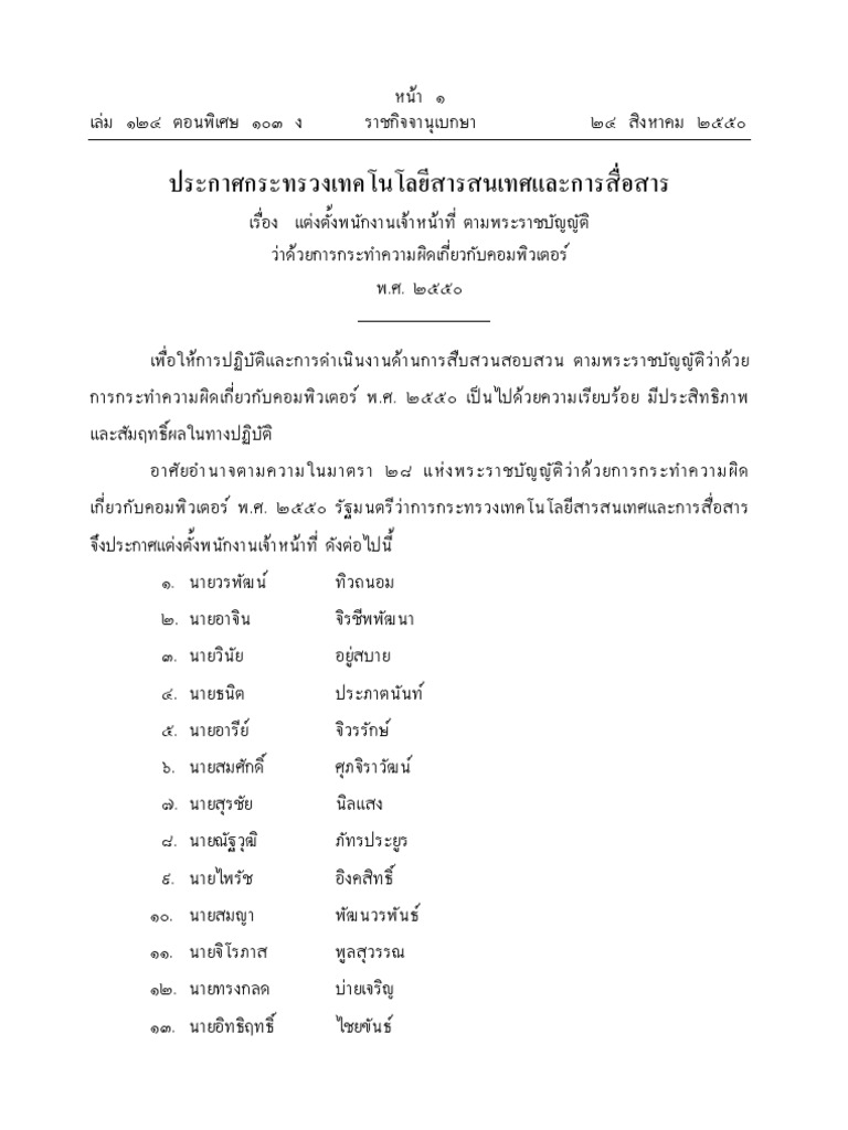 ประกาศ MICT รายชื่อ พนง.เจ้าหน้าที่ (PDF 4 ไฟล์)